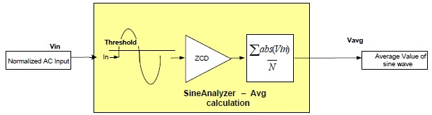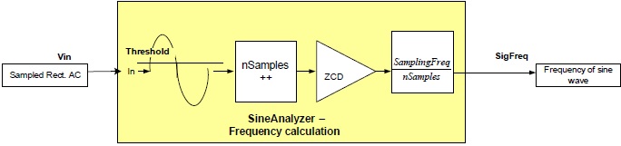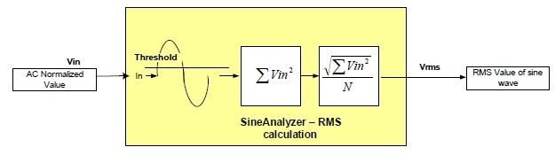 The Sine Analyzer with Power Measurement (POWER_MEAS_SINE_ANALYZER) API provides a set of functions that accumulates the sampled sine wave inputs, checks for threshold crossing point and calculates the RMS, Average, and EMA values of the input sine wave. This module can also calculate the Frequency of the sine wave and indicate zero (or threshold) crossing point.