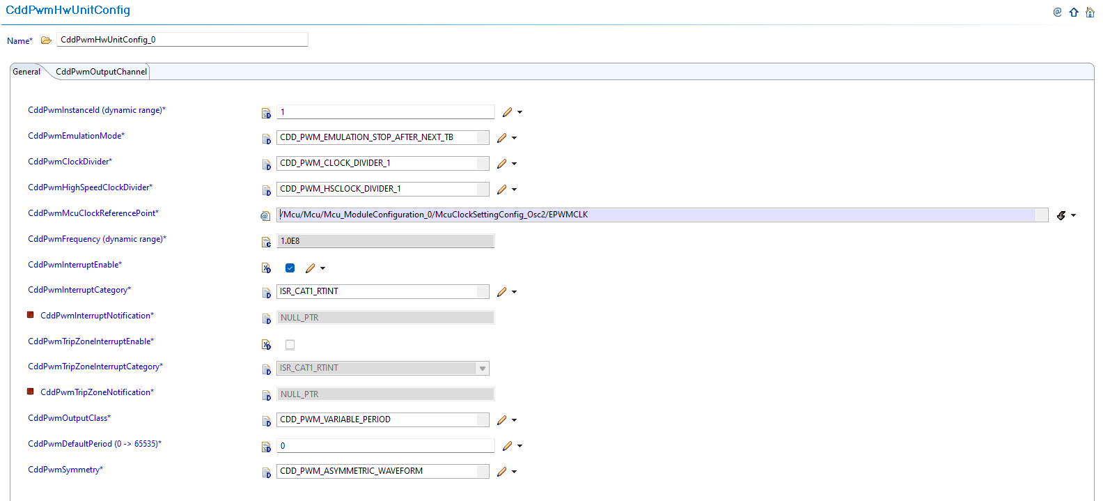 Navigate to CddPwmUnit: Navigate to Cdd → CddPwmUnit and update configurations to reference the CDD PWM instances allocated in Resource Allocator