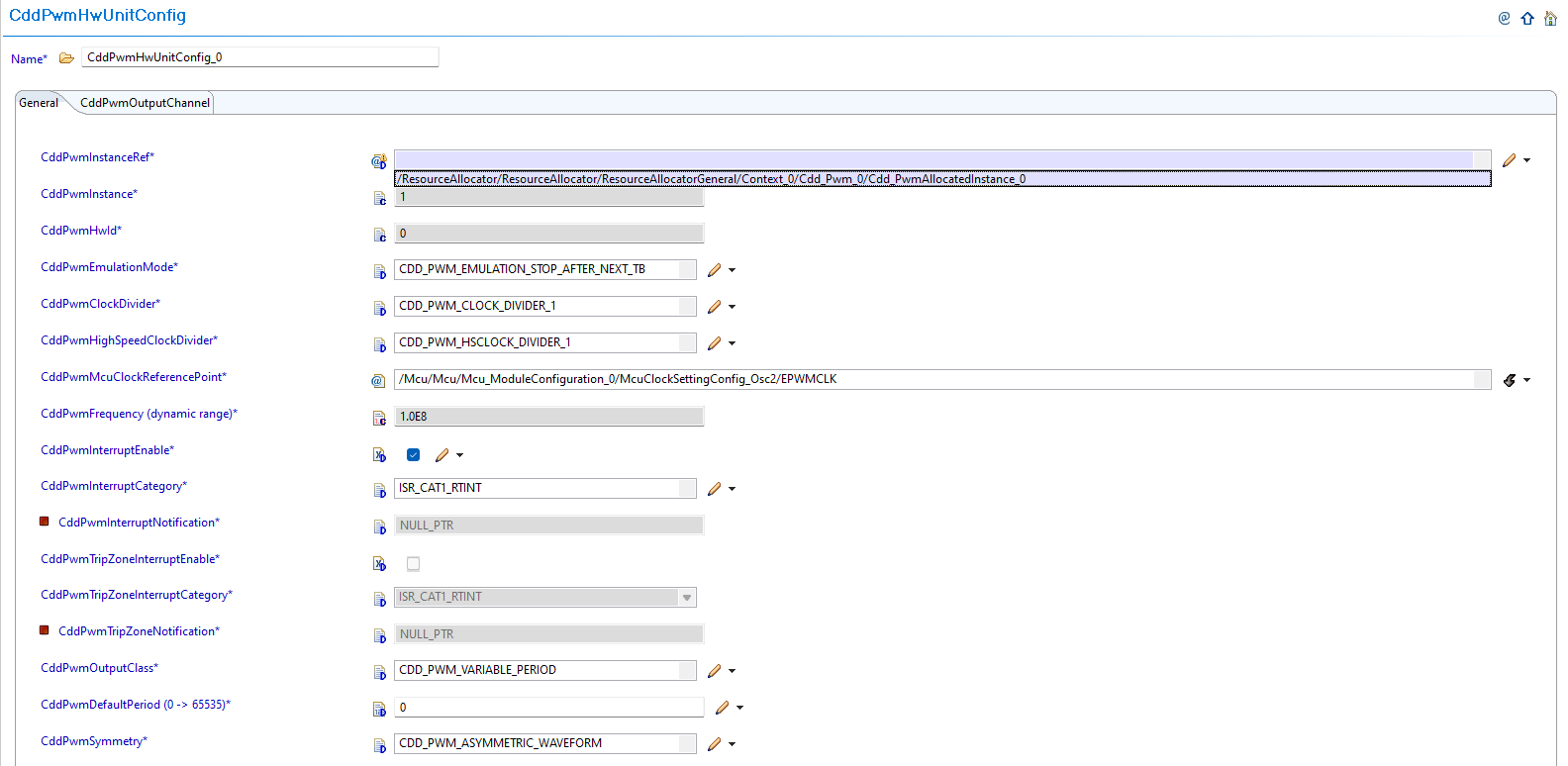 Set Instance Reference: Set CddPwmInstanceRef to point to the corresponding Cdd_PwmAllocatedInstance in Resource Allocator