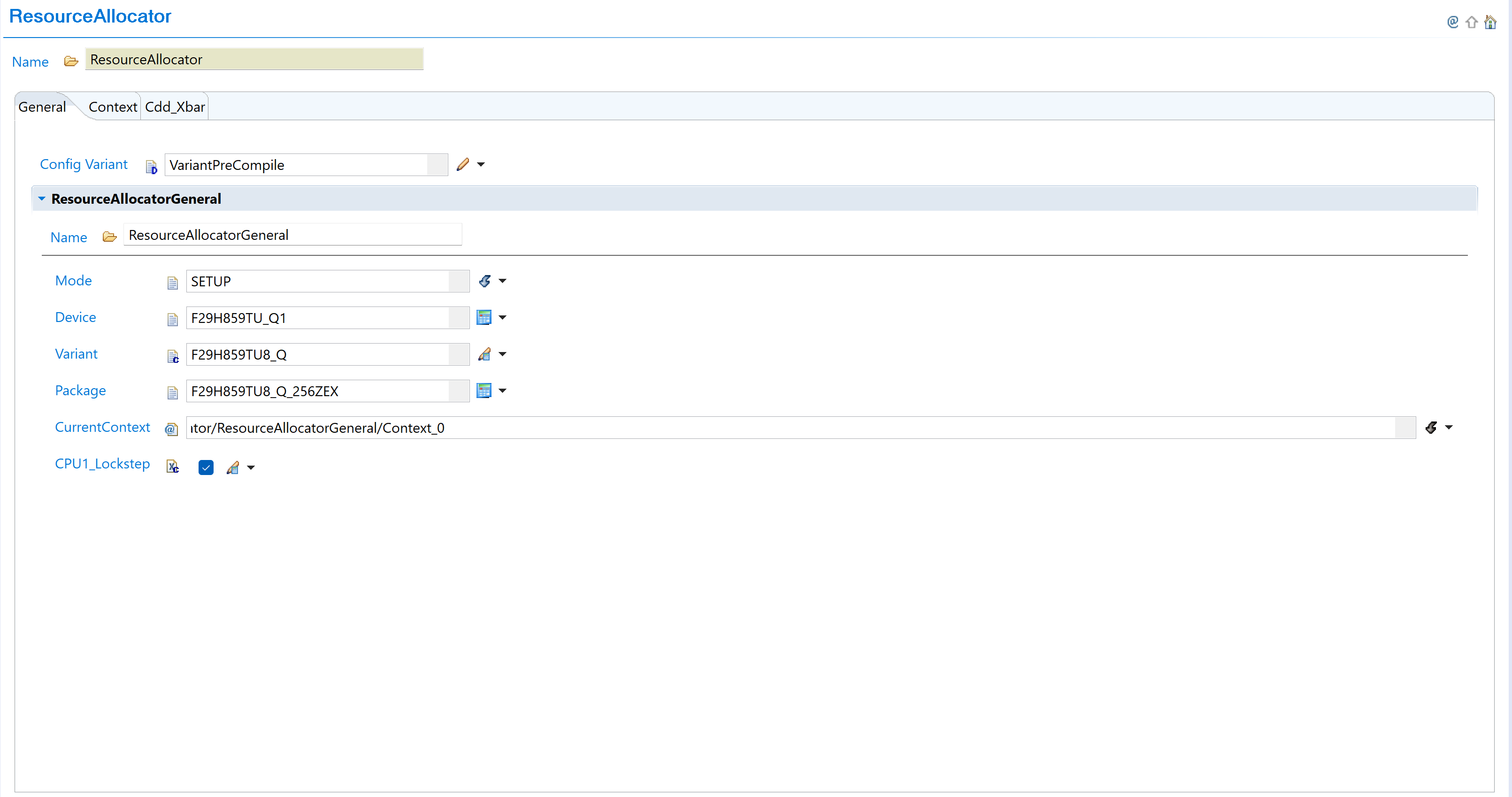 Configuration: Navigate to ResourceAllocatorGeneral → Context and configure Context_0.