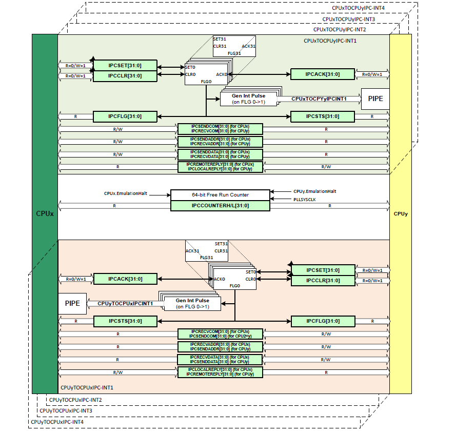 Synchronization: The IPC module allows synchronization between two cores participating in IPC communication.