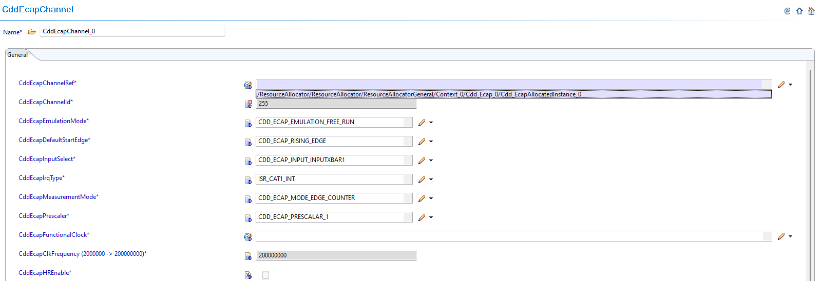 Navigate to CddEcapChannel: Navigate to Cdd → CddEcapChannel and update configurations to reference the CDD ECAP instances allocated in Resource Allocator