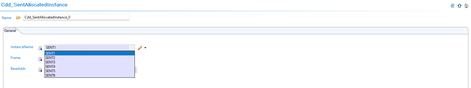 Configure SENT Instance: Configure the InstanceName, Frame, and BaseAddr for each allocated instance: