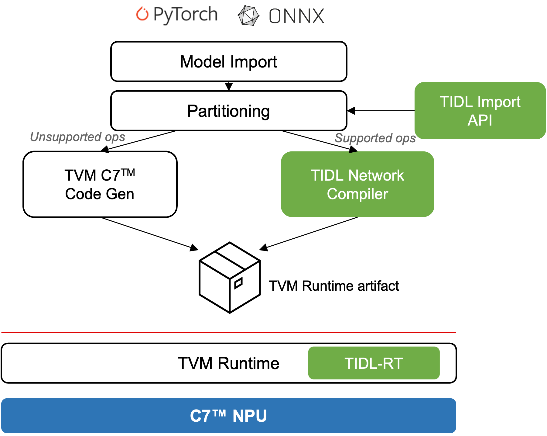TVM handles operators outside TIDL coverage via C7™ NPU code generation