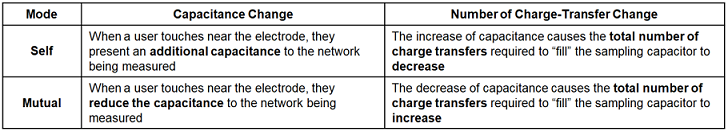 The CapTIvate Software Library analyzes the number of charge transfers that were required to fill the sampling capacitor to determine if a user is present or not.