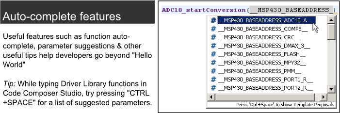 ControlSUITE, MSP430Ware also includes high level peripheral driver